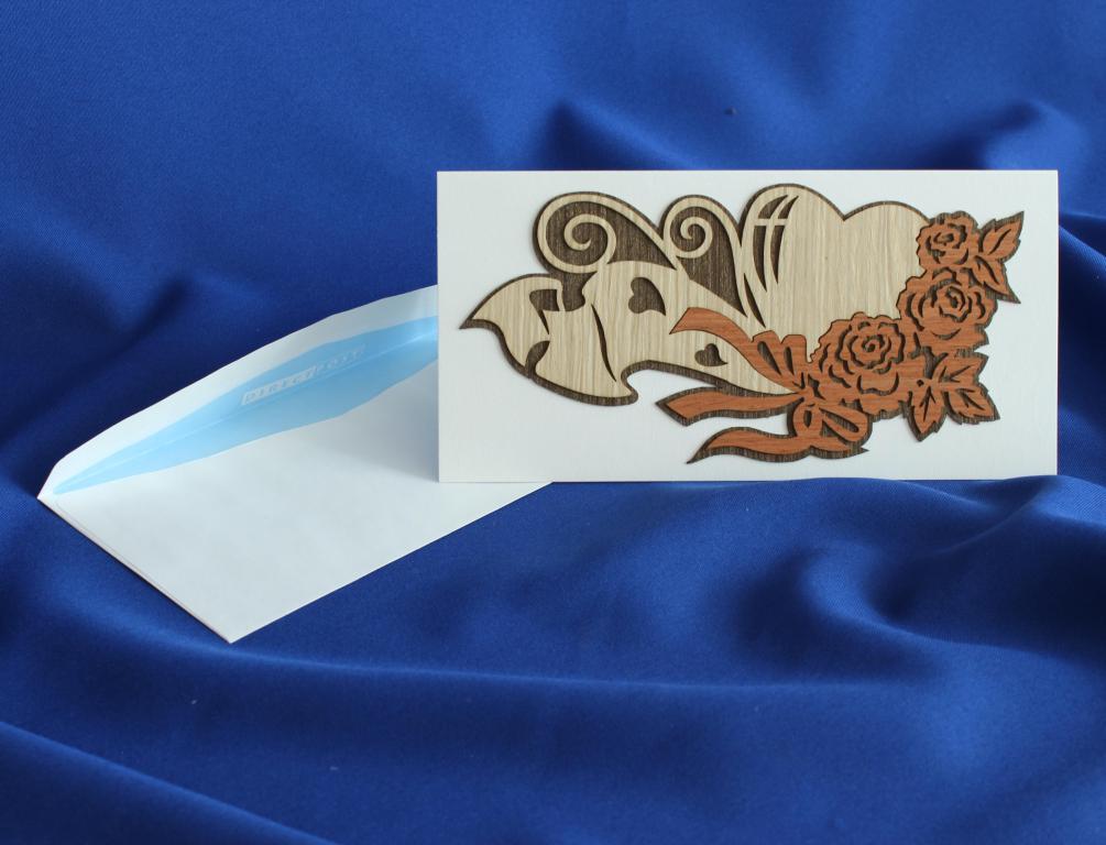 Каталог / Открытки / Открытки с элементами шпона / Объемные открытки из шпона / Открытка Сердце с розами