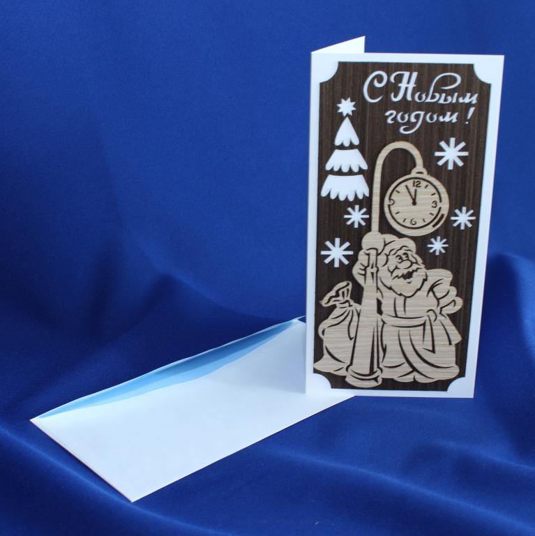 Каталог / Открытки / Открытки с элементами шпона / Объемные открытки из шпона / Открытка С новым годом!