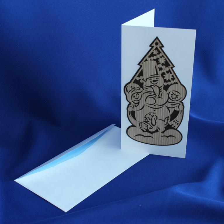 Каталог / Открытки / Открытки с элементами шпона / Объемные открытки из шпона / Открытка Снеговик с детьми
