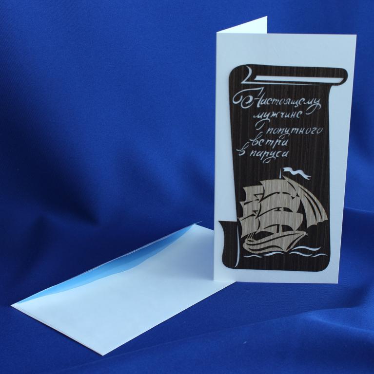 Каталог / Открытки / Открытки с элементами шпона / Объемные открытки из шпона / Открытка Настоящему мужчине