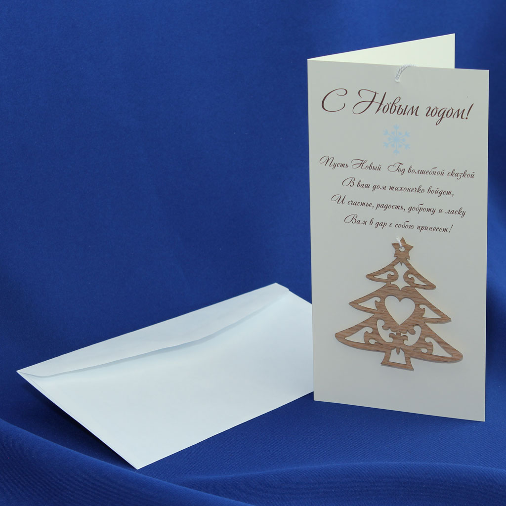 Каталог / Открытки / Открытки с элементами шпона / Полиграфические с подвесками из шпона / Открытка С Новым годом