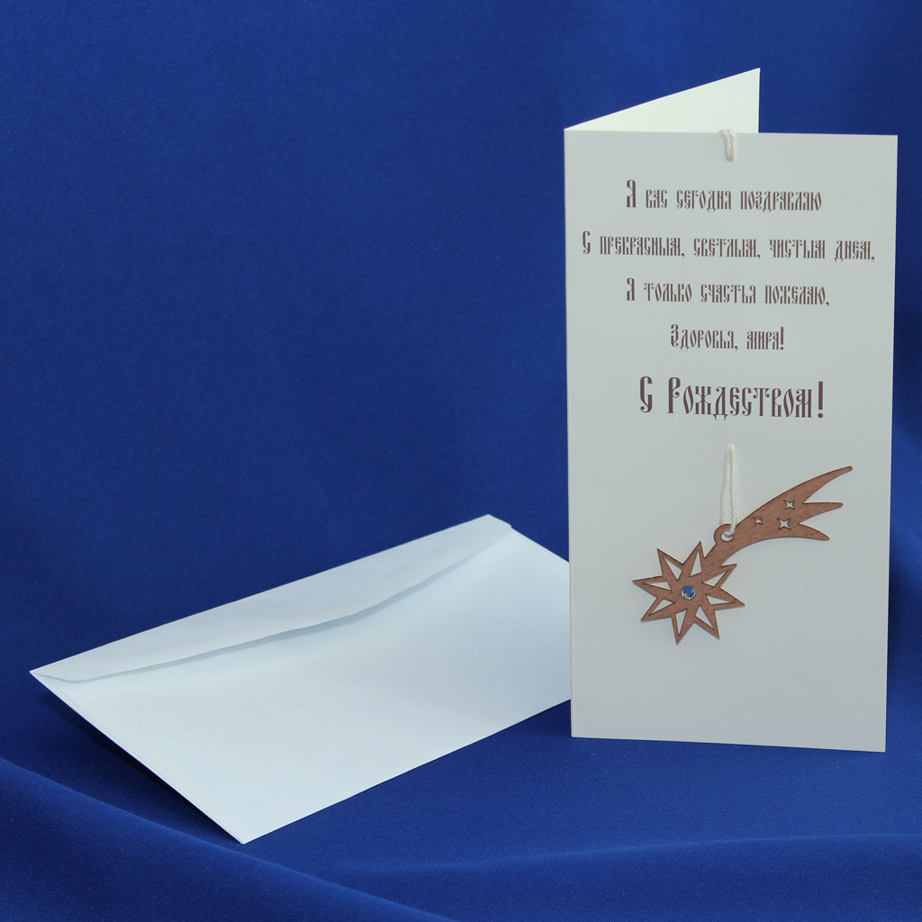 Каталог / Открытки / Открытки с элементами шпона / Полиграфические с подвесками из шпона / Открытка С Рождеством