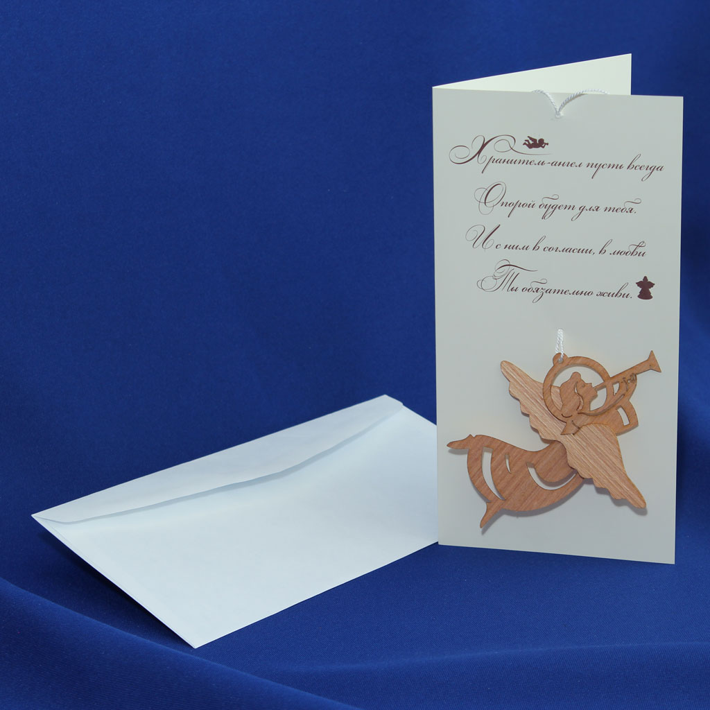 Каталог / Открытки / Открытки с элементами шпона / Полиграфические с подвесками из шпона / Открытка С Ангелом-хранителем