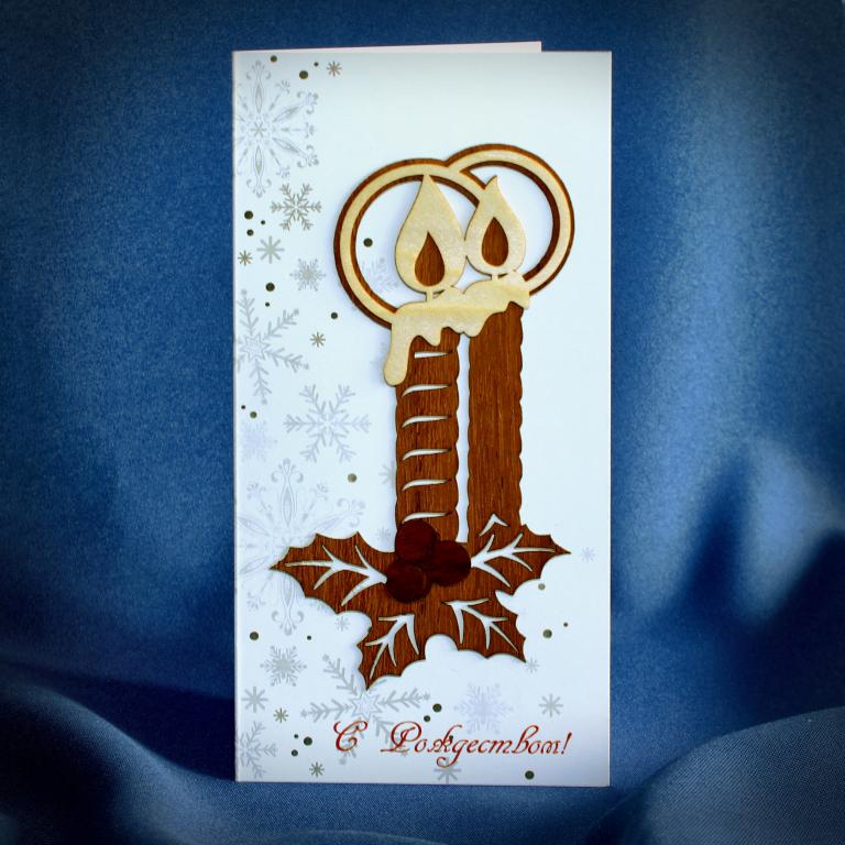 Каталог / Открытки / Открытки с элементами шпона / Новый год и Рождество / Открытка Рождественская "Свечи"
