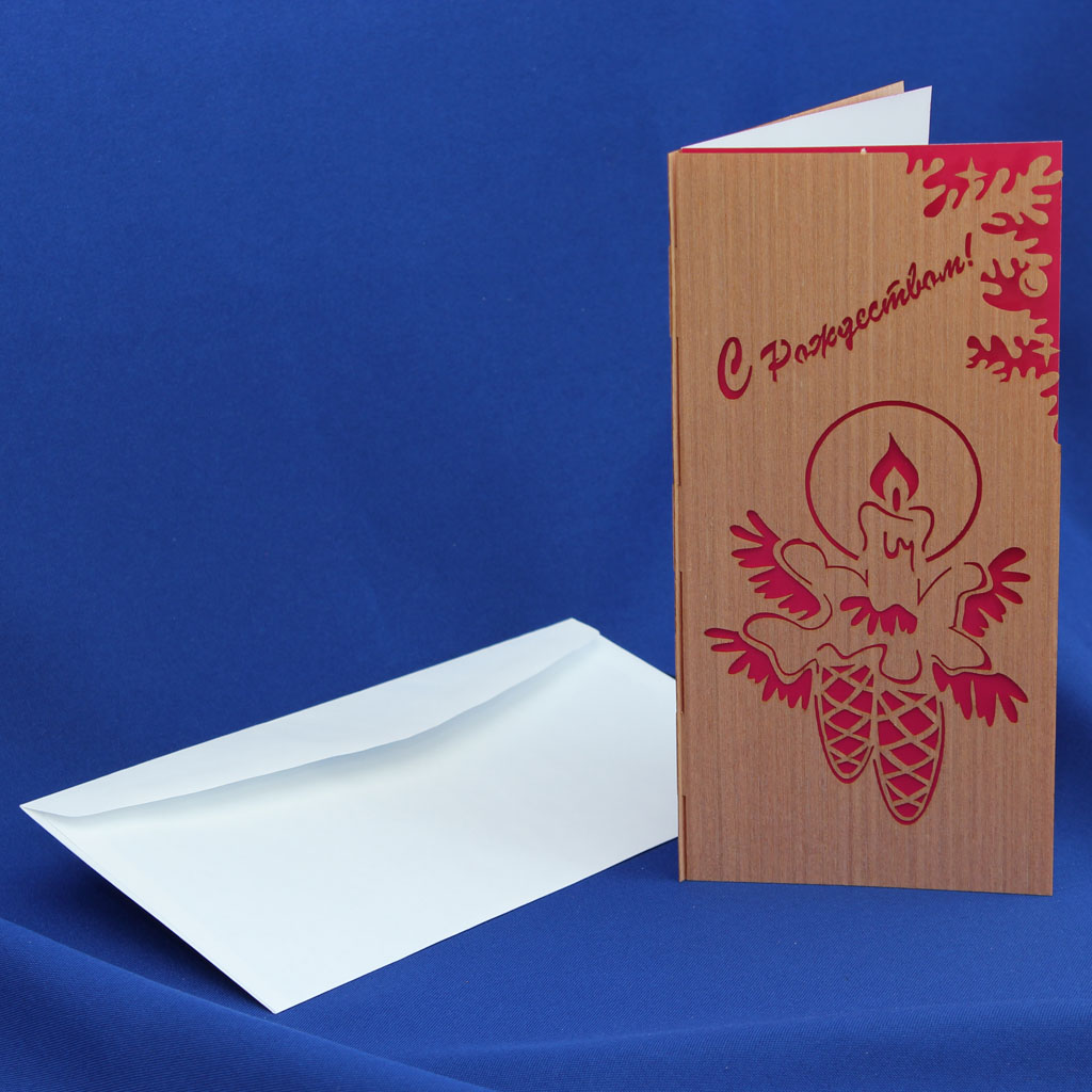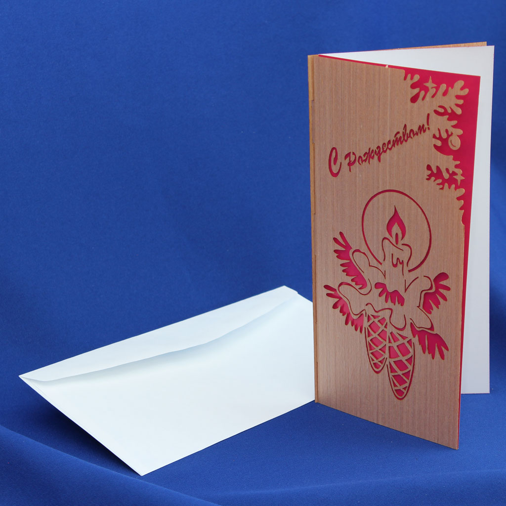 Каталог / Открытки / Открытки из шпона / Новый Год и Рождество / Открытка С Рождеством Свеча на ветке