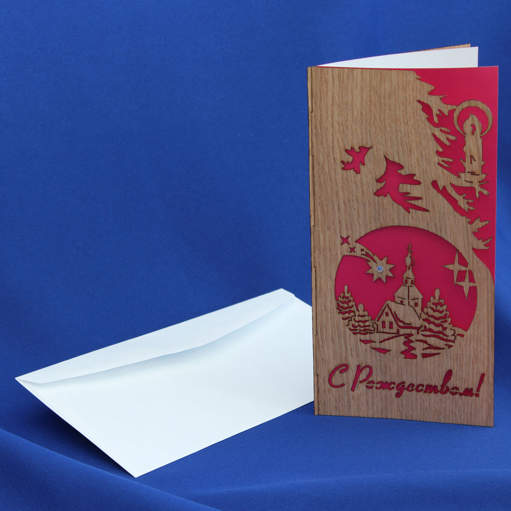 Каталог / Открытки / Открытки из шпона / Новый Год и Рождество / Открытка С Рождеством! Рождественская ночь